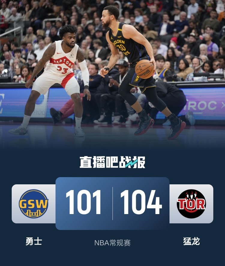 1月14日讯 NBA常规赛,猛龙今日迎战勇士,前者近来状态不佳遭遇五连败,后者上场比赛则是输给步行者,此役库里和维金斯复出,追梦、库明加、佩顿、波杰姆斯基和奎克利缺战。