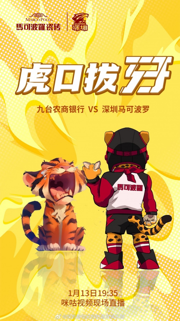 1月13日19:35,CBA常规赛第30轮,深圳马可波罗将客场挑战吉林九台农商银行。届时,咪咕视频进行直播。