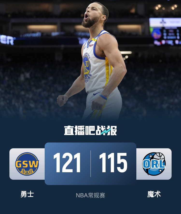 首节之争魔术在和勇士的短暂较量中逐渐占据上风,进入轮换阶段的他们送出一波16-7的攻势一举拉开两位数领先;次节成为班凯罗和库里的对攻表演,两人这一节双双拿到16分势均力敌,不过手握领先的魔术在班凯罗的带领下一直保持着两位数领先;库里则更像补锅匠缝缝补补避免球队崩盘,最后时刻库里后场命中压哨三分为球队追至14分进入下半场。休息归来库里彻底爆发,他在9分钟里命中4记三分爆砍22分,勇士轰出37-11的进攻狂潮直接扭转并反超两位数领先。魔术末段依靠10-3短暂止血;末节双方持续拉锯,勇士虽然一直保持领先但面对对手的反扑也很难彻底锁定胜局,不过最后时刻又是库里站出来,他两记关键三分为勇士顶住压力守住胜利。最终,勇士逆转魔术拿下比赛,过去8场比赛拿下7场。