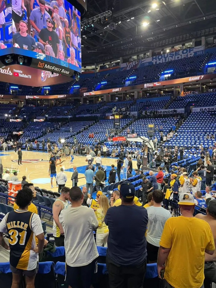 就像在满场蓝色海洋里,坚持固守的这些金黄步行者球迷似的。