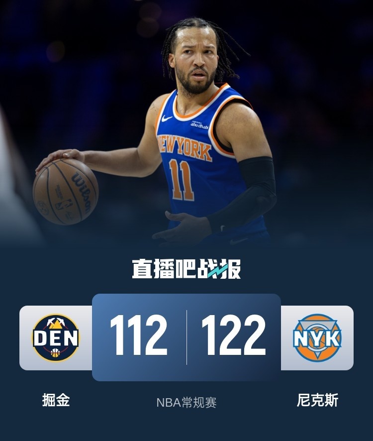 首节之争尼克斯延续近期良好势头并以一波20-8的攻势欢迎远道而来的对手,掘金开局打得相当被动,约基奇一个回合连着两次犯规被迫早早下场导致局面落入被动,不过好在掘金逐渐回暖并依靠穆雷末段连拿7分追上比分。次节尼克斯一直掌控局面保持微弱优势,掘金外线打不开导致一直被动追分并带着6分劣势进入下半场。休息归来约基奇虽然没能找回状态,但队友们表现给力半节时间送上20-6的攻势实现反超,不过尼克斯后半段回暖回敬17-6的攻势重夺领先。末节拉锯尼克斯一直保持优势,最后时刻一波关键6-0帮助他们拉开10分分差奠定胜局,值得一提的是尼克斯主帅锡伯杜全场仅仅叫了3次暂停。最终,尼克斯主场力克掘金,取得5连胜的同时送给掘金3连败。