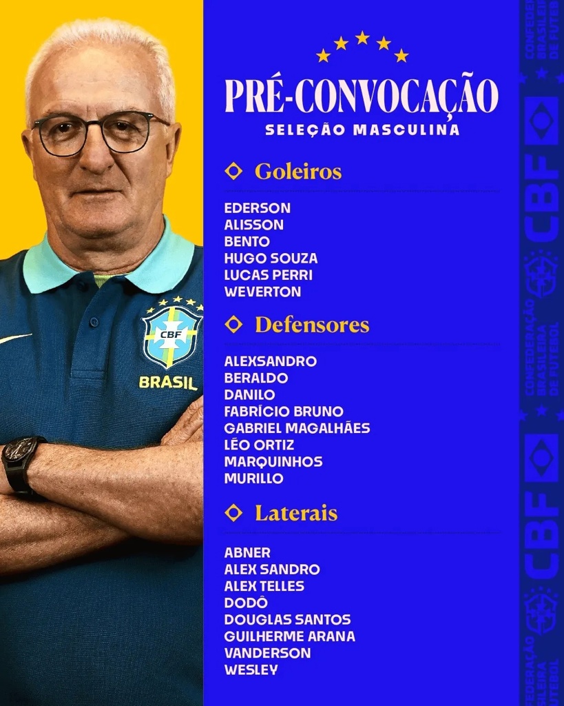 3月1日讯 巴西足协公布了一份由多里瓦尔选定的52名球员名单,他们将参加3月份的世预赛,巴西队将于20日和25日分别对阵哥伦比亚和阿根廷,最终名单将于下周五公布。