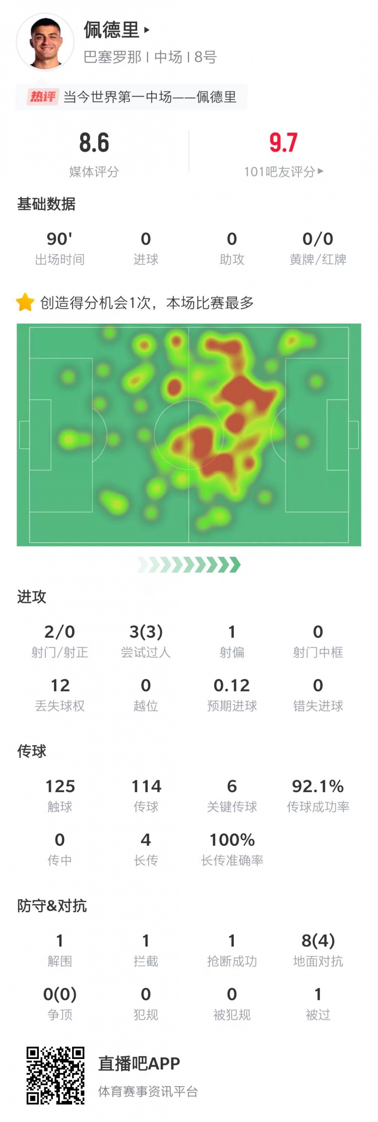 佩德里本场数据: